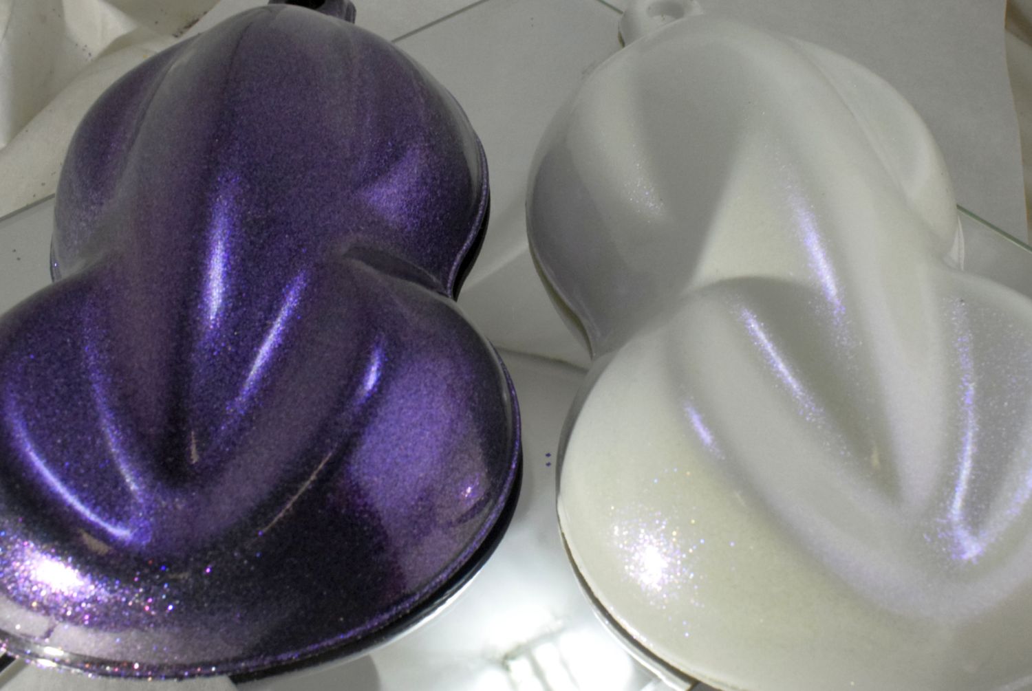 Automotive Pearl paint color pallets are created by combining pigments, dyes and pearlescent pigments to achieve a wide variety of colors. We can provide you with an endless array of color combinations. Pearl paint colors will give a "cleaner" look over metallics and add color to your paint, but do require more light to give their true "POP".