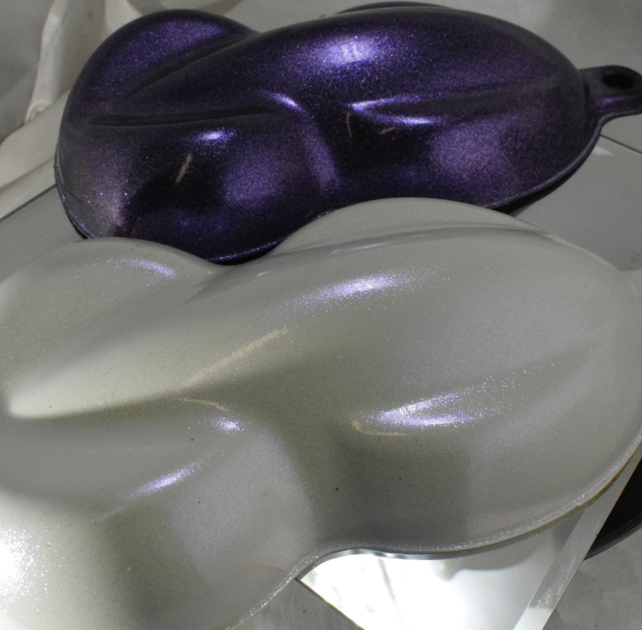 Custom Powder Coat colors added to clear over base colors. (We recommend the Synthetic Series for powder coating but all are compatible as long as bake temperatures do not exceed the recommended temp of the product)